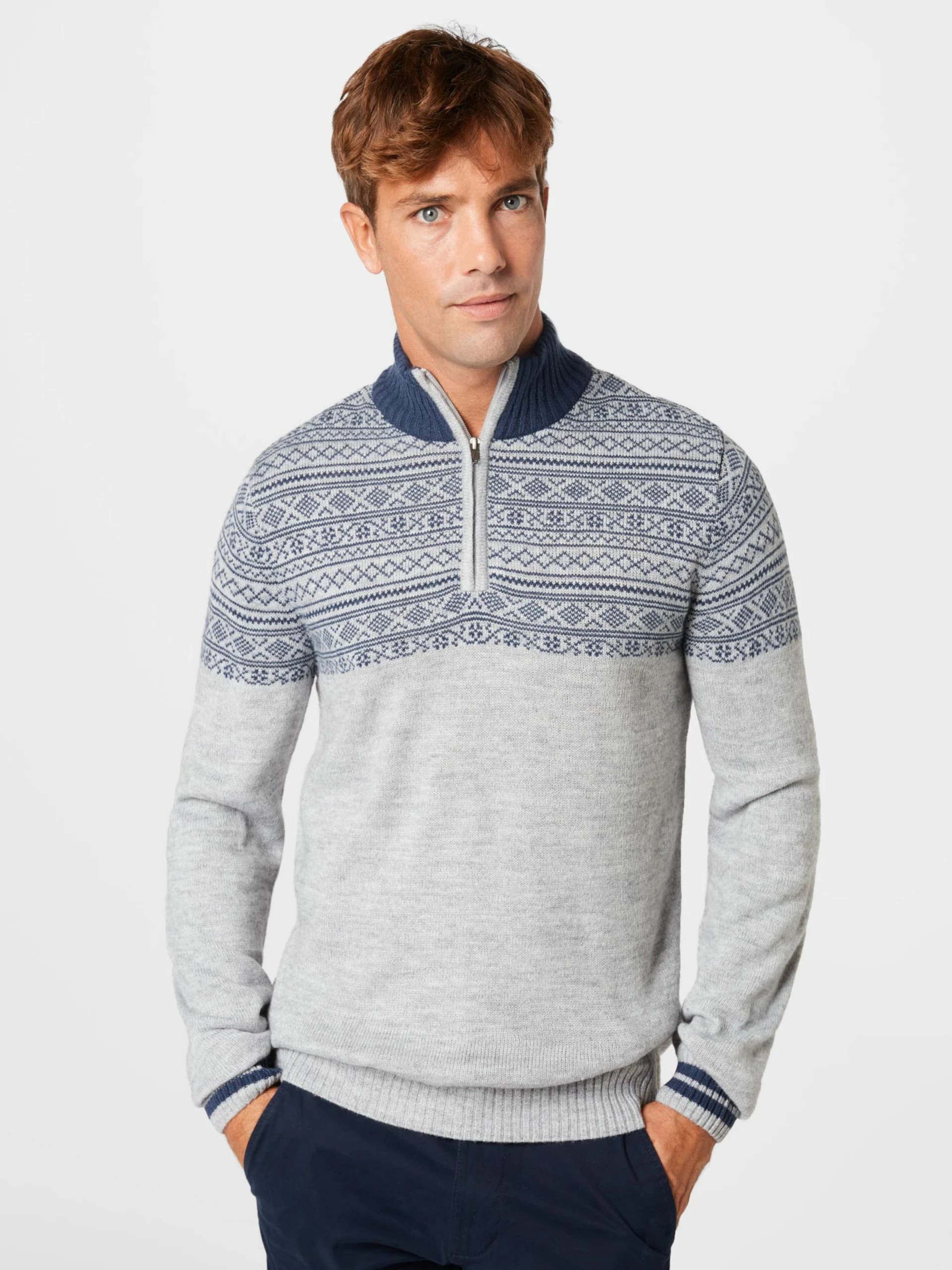 Blend Coltruien Trui Heren Grijs Gemêleerd